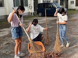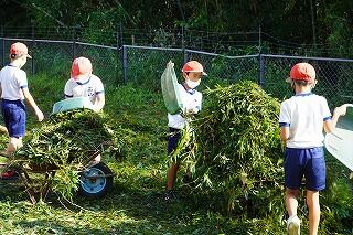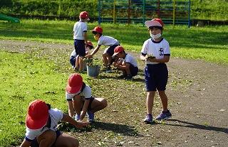今日は幼稚園玄関前の落ち葉掃除をしてくれました。一生懸命取り組んでいる姿を見て、とてもすばらしいと思いました。