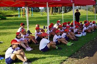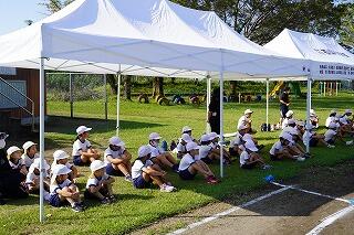 開会式から閉会式まで、ほとんどのプログラムを実施して、子どもたちは自分の係の動きやアナウンスなどを確認していました。とても良いお天気で、お昼頃にはかなり暑くなりました。熱中症対策として、水分補給だけでなく、ミストや大型扇風機も稼働させました。