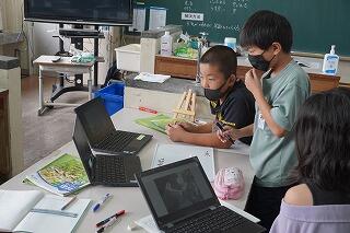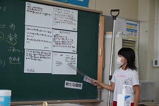 今日は、撮影した写真を見直し、雲の様子と天気の変化には、どんな関係があるか、個人で考えた後、グループで話し合ってホワイトボードにまとめて、発表しました。学習用PC(1人1台端末)の活用も慣れたもので、戸惑うことなく画像を呼び出し見直していました。また、グループワークもしっかりできていて感心しました。