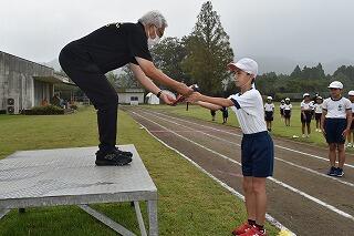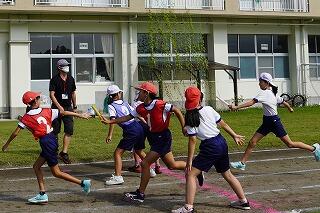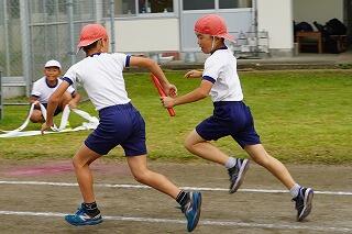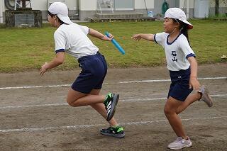 今日は運動会の全体練習がありました。9時頃から雨の予報で、実施できるか心配していたのですが、1校時はなんとか天気がもってくれて、全校リレーの練習と全校応援の練習をしました。