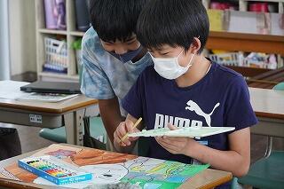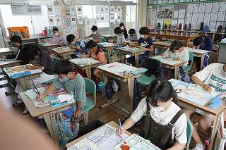 図画工作科の学習では、各学年読書感想画に取り組んでいます。