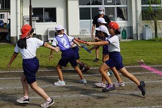 全校リレーも全員応援も本日が初めてでしたが、それぞれの係がてきぱきと動いてくれてスムーズに練習が進みました。全員応援では、これまで団長や副団長、リーダーが中心になって内容を考えたり、動きを練習したりしていて、今日は各団でまとまって練習しました。両団ともに元気よく、動きも大きく、チームワークよく応援していました。