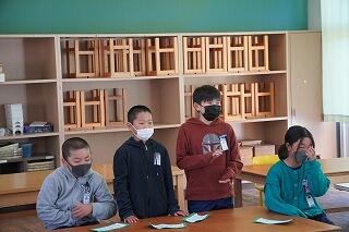 子どもたちは他の学校の作品に、「アイディアすごい」「おもしろい」「よく考えている」と、作品のよさをたくさん見つけていました。