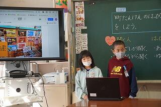 そして、今日の学習では、高城小、有水小も各校で同じように学習してきたことを、学習用PCを使って紹介し、感想を伝え合いました。