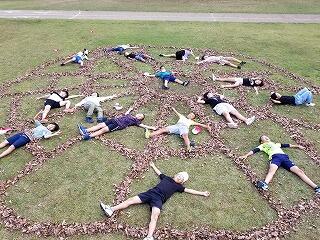 先週、石山小では校庭で集めた葉や石など自然の材料を組み合わせて、造形活動を行いました。まず、どんなものを使うかやどのように並べるかをグループで話し合い、それから活動に入りました。色付いたイチョウや桜の葉、枝や石をきれいに並べていました。今の季節ならではの活動を行うことができました。その作品を学習用PCで撮影しました。