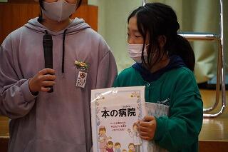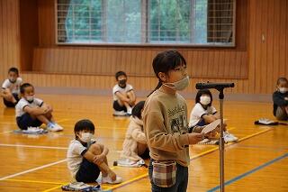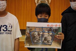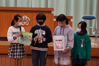 11月18日(金)の全校朝会時に、保健体育委員会がボールや一輪車などの休み時間に使うものの、使い方と後始末の仕方を説明しました。図書掲示委員会は、図書室の本の扱い方について具体的に教えました。