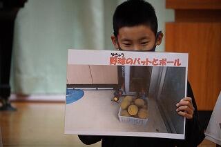 2つ目は、「ものの使い方を考えよう。」です。全校のみんなに「ボールの使い方や片付けの仕方」「図書室の本の扱い方」「掃除用具の使い方」などを、呼びかけて、大切に扱ってもらおうということです。子どもたちが、日頃、委員会活動を行う中で、気付いて、何とかしたいという思いが反映されています。委員会ごとにお願いをしようといくことになりました。