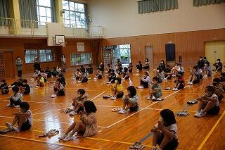 高城小学校に、3校の2年生と5年生が集まって、対面による合同学習(2年生は体育科と生活科、5年生は図画工作科と体育科)を行いました。
