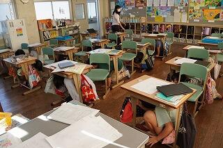 緊急地震速報等の緊急放送が入ると、子どもたちは机の下に隠れたり、運動場の中央に集まったり、自分の身を守る行動をとりました。まずは、「自分の命は自分で守る」の考え方が大切だと思います。子どもたちは、これまでの避難訓練や事前指導の積み重ねがあり、しっかりと取り組んでいました。