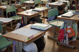 午前10時40分、大規模地震が発生したという設定で、子どもたちへは予告なしで実施しました。予告なしで突然行う形にしたのは、地震等の災害などはいつやってくるか分からないので、児童の危機対応力を高めるねらいからです。