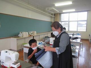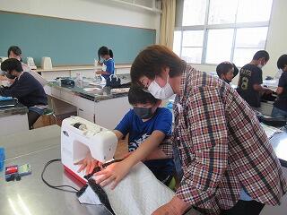 ミシンを使って縫っていくのですが、口の部分が難しく、「先生、ここを教えてください。」「先生、ここがうまくいきません。」「先生、ミシンが動きません。」と、担任の先生一人で全てに対応するのは難しく、「ちょっと待ってて」と順番に回ることになります。特に、ミシンにトラブルが起きると、なかなか作業(学習)が前に進まないこともあります。