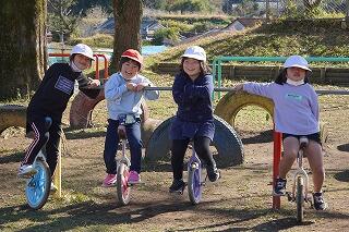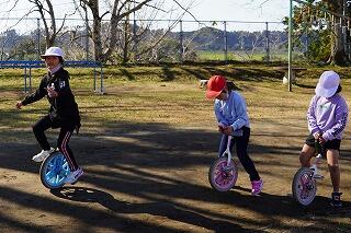 1年生は一輪車を楽しんでいました。