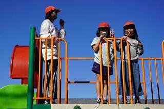 昼休み時間は、お天気がよくて運動場に出て、元気に遊んでいました。