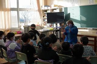 学習部長の先生、生徒指導主事の先生、保健室の先生から冬休み中に気を付けてほしいことについてお話がありました。子どもたちはしっかり聞いていました。