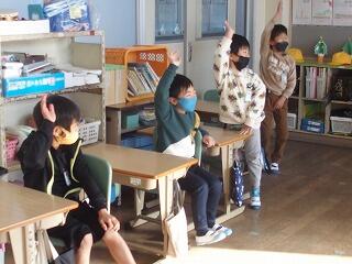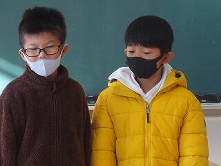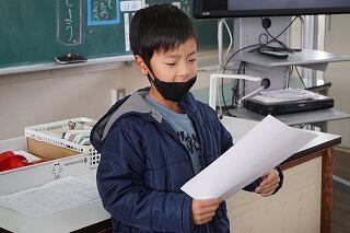 (2年生)は、「姿勢をよくして勉強して、先生にほめられました。」「発表がたくさんできるようになりました。」「となりの人に説明するときに、理由も言えるようになりました。」「毎日、朝のボランティアをしました。宿題プリントやノートならべ、ベランダそうじをがんばりました。」、そして、「3学期は、授業中に、みんなの前に出て、『説明をします』と言って、大きな声で説明ができるようになりたいです。」と2学期にがんばったことと、3学期の目標について発表しました。