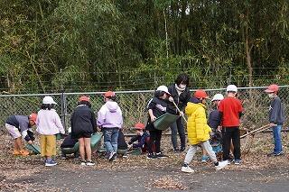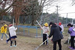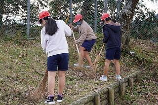 (3・4年生は運動場を掃除しました。)