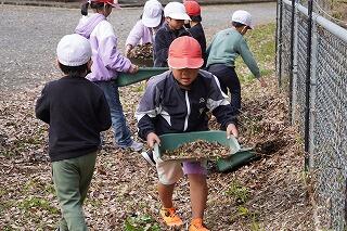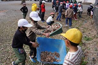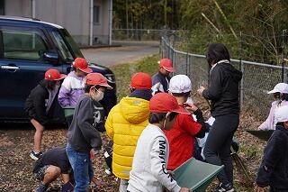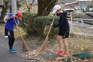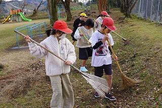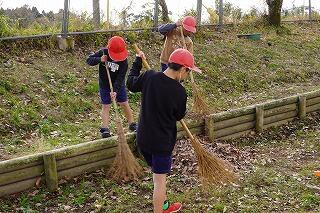 今日も寒い朝でしたが、登校指導を終えて、学校に戻ると、たくさんの5・6年生が運動場に出て、庭箒やてみをもって、落ち葉を集めてくれていました。