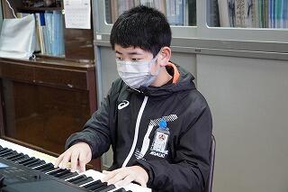 各学級で校歌を歌いました。ピアノ伴奏はオンラインで各教室に届けました。