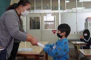 子どもたちは、各学級で担任の先生から通知表「あゆみ」を笑顔で受け取りました。「クリスマス」や「お正月」と大きな行事が続きます。プレゼントやお年玉、みんなが集まったり、お出かけしたりと、とても楽しみにしている様子でした。