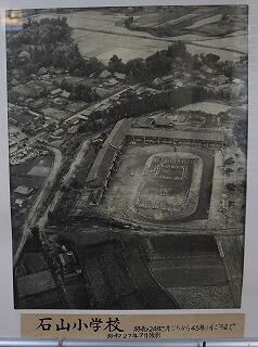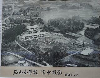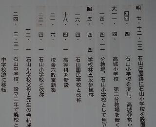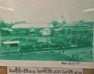 例えば、明治7年12月22日に石山庄屋跡(現在の国道10号線の石山歩道橋の西側)に石山小学校を設置したこと。初代校長先生は、長野吉之烝先生(在任期間:明治7年~24年)であったこと。昭和24年に、現在の場所に移設されたことなどを校長室の掲示物等で見付けました。