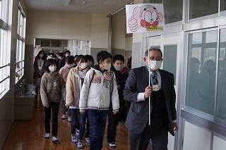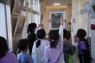 前半は、2つの班に分かれて、A班は校長先生から、子どもたち向けに、「自分を磨く」、「読書のすすめ」等についてお話があり、「小学生のボクは、鬼のようなお母さんにナスビを売らされました。」(文/原田 剛 )の絵本を読み聞かせしていただきました。B班は教頭先生の案内で、学校探検をさせていただき、先輩方の頑張っている姿や学校施設について見たり、聞いたりすることができました。(その後,A、B入れ替わり)