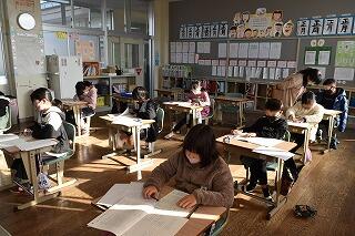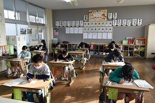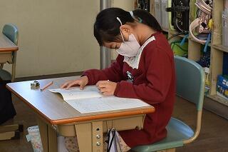 いつもは、元気な声が聞こえてくる教室からは、鉛筆を動かす音とテスト用紙をめくる音が聞こえていました。集中して取り組んでいました。