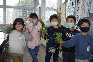 先週、1年生が生活科で育てた野菜“ラディッシュ”を収穫し、校長室と職員室に届けに来てくれました。新鮮でみずみずしく、おいしそうなラディッシュでした。