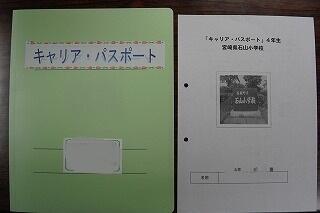 子どもたちは、令和3年度からキャリアパスポートに取り組んでいます。キャリアパスポートとは、自分自身の変容や成長を自己評価できるように、様々な資料を保存・蓄積したものです。現在、それぞれの学年で、新学期の目標や行事の目標、その振り返り、気付き等をこのパスポートに書き込んで、自分の成長を記録しています。保護者の皆様にも、コメントを書いていただくなど、御協力をいただいています。このパスポートは小学校から中学校へ、そして、高校へと引き継いでいきます。