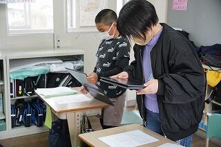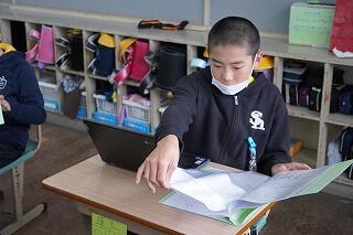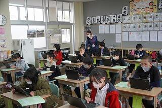 今週は5年生が、1人1台端末(学習用PC)を使って、4年生と5年生の内容をデジタル化する作業を行いました。ICT支援員の先生にもサポートしていただき、無事、移行が完了しました。ICT支援員の先生からは、丁寧に手順等を教えていただきました。子どもたちは、基本的な操作技能は身に付いているので、手順を教えていただいた後は、ほとんど自分たちで行っていました。また、ミニ先生も出てきて、子どもたち同士教え会いながら取り組んでいました。