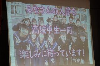 今日の午後、高城中学校で新入生入学説明会が行われました。高城中学校入学予定の本校の6年生も参加しました。