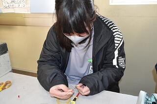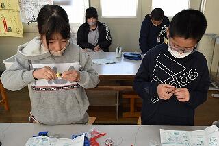 5年生は理科の学習で「電流と電磁石」の学習をしています。今日は、その導入で、「電磁石をつくり、ゼムクリップを使って、電磁石のはたらきを調べてみよう。」をめあてに、コイルづくりをしました。コイル枠にエナメル線(導線)を端から規則正しく巻いていきます。そして、ある程度巻いたら、端に寄せてさらに巻いていきます。今日は100回巻きコイルを作りました。