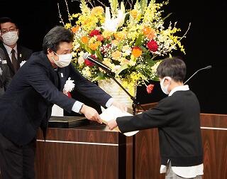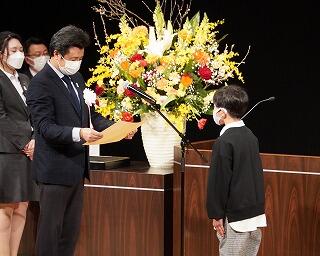 本校児童は善行部門(個人の部)で表彰を受けました。また、財団法人椎屋恵進会様から、盾と記念品をいただきました。おめでとうございます。