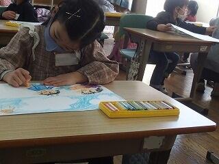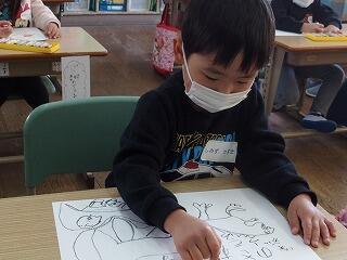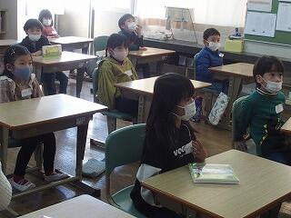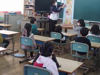 新入学児童についても、短い時間でしたが、保護者説明会と並行して体験活動を行いました。1年生教室で、自己紹介をしたり、お絵かきをしたり、読み聞かせを聞いたりしました。また、学校探検もしました。