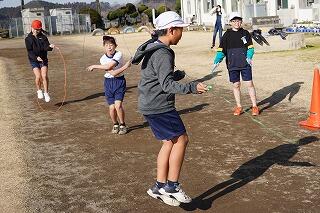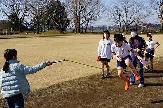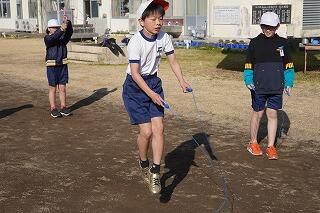 2月は体力向上月間で、全校で「なわとび運動」に取り組んでいます。体育の時間や昼休み時間などを使って学級や個人で取り組んでいます。