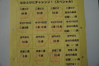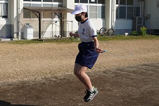 短縄では、自分のめあてとする跳び方に挑戦し、できたらカードにスタンプを付けています。今日は5年生の様子を見せてもらいましたが、「はやぶさ」「交差二重」「サイドクロス二重」「うしろ二重」など、ビュンビュンと縄を回転させながら技に取り組んでいました。すごい!