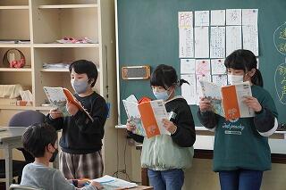 (3年生)「速読、漢字に思いをこめて、グループ読み声、群読、音楽のプレゼント」