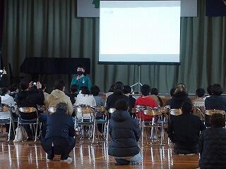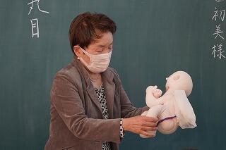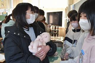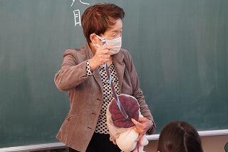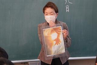 「人間は小さな点のような受精卵から、10か月で体が作られて、約3000gの重さになって、「オギャーッ」て泣いて生まれてくる。これは本当にすごいことで、奇跡なんだということ」、「そして、今、自分がここにいるということは、父母、祖父母、曾祖父母・・・という命のリレーがあったからこそであるということ」などのお話をしていただきました。新生児や胎児人形、写真、音声等を使って、子どもたちに語りかけるような於田様のお話から、「命の大切さ」を改めて感じ取ってくれたようでした。