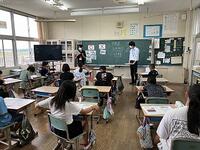 税務署から2人来ていただき勉強が始まりました。税務署の方から「税金は必要ではない。無くてもいい。」と尋ねられて半数以上の子どもたちが「無くてもいい」と答えていました。でも、勉強を進めていき最後に同じ質問をしたときには、今度は全員が必要だと手を挙げてくれました。学校の先生以外の方からいろいろ学ぶことはとてもすばらしいことです。子どもたちにとって忘れられない授業になったことでしょう。