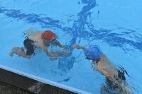 水に入ると、少々の冷たさも気にならない様子で、水しぶきのように笑顔がはじけていました。