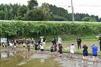 6月16日(金)の昼から4~6年生は、石っこ水田(学校の近くの借りている田んぼ)で田植えを行いました。