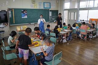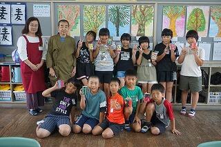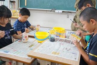 6月30日(金)ふれあいの日に3・4年生は、石山観音寺のキャンドルナイトに飾る、キャンドルホルダーの色付けをしました。子どもたちの作品がキャンドルナイトに彩を添えるという自分たちにできるお手伝いを、11区自治公民館長の黒肱安宣様が依頼してくださったからです。