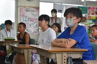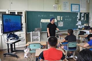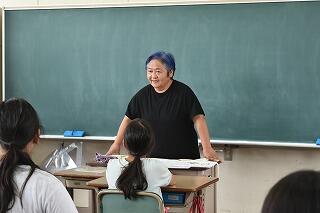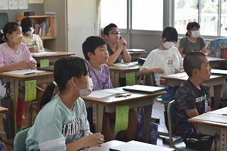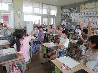 「かたりべぐるーぷ 南の風代表 常盤 泰代 様」をお招きして戦争についてお話をしていただき、戦争について学習しました。6年生は、「命を惜しむな」という言葉から始まった授業に引き込まれ、集中力を切らすことなく学習しました。自分の住む都城市の空襲について初めて知る子どもたちでしたが、分かりやすい語りを聞いたり、具体物(写真や実物の資料)を見たりすることで、子どもたちなりに理解し思考を深めることができました。