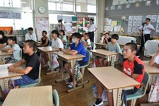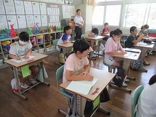 7月のお昼の放送で高学年児童6名が、音読発表を行いました。