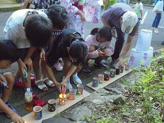 参道の入り口前に、3年生から6年生が色付けしたキャンドルホルダーが展示され、参加した子どもたちや保護者も盛んに写真撮影をして喜んでいました。石山観音寺の住職様や幸の陶の方々や公民館長様や地域の方々などたくさんの人々に御支援いただいたおかげで、子どもたちは、自分たちの住む身近にある石山観音寺の素晴らしさを体感し、思い出に残る一日にすることができました。ありがとうございました。