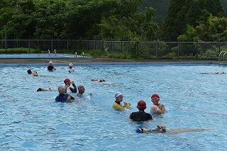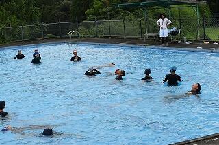 しかし、衣服を着たまま自力で泳ぐことは難しく、いつもなら25m泳ぎきる子が、プールの横をおよぐことすら困難で、水の力や抵抗の大きさを体感しました。