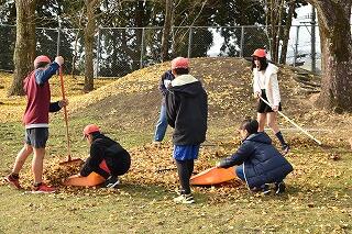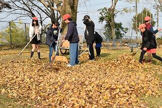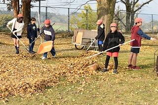 今年も校庭のイチョウの葉が、運動場を黄色く染めていると、落ち葉を掃き集めようと高学年の子どもたちが集まり、せっせと片付け始めました。集めても集めても落ち葉の量が多くて、なかなか終わりませんが、頑張ってくれました。