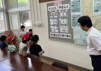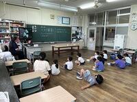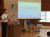 学習部の先生が、「7月の目標」について話をされました。その後、図書委員会の子どもたちが、「読書に関するイベント」の説明をしました。委員会の子どもたちの自主的活動をのばすように工夫されていました。話を聞いている子どもたちは、さらに良い姿勢ができていました。
