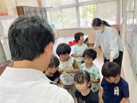 石山幼稚園の子どもたちは、「一人一人えがおで かがやける」活動をしています。幼稚園の先生方が、子どもたちが意欲的に活動できる内容を工夫されて取り組まれています。校外へ活動に行く時や帰ってきた時に、小学校の職員玄関で「いってきます!」「ただいま!」と元気なあいさつをしています。事務の先生方も、その姿に心が「ほっこり!」されています。「子どもたちの元気な声」「楽しそうなえがお」が、いつも見られています。