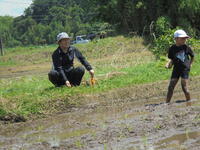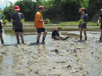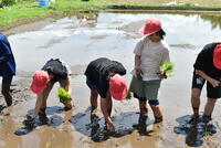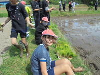 保護者・地域の方・JA高城のご協力を得て、5年生と6年生が田植えをしました。苗代田(なわしろだ)で12〜15cmほどに成長した苗を、田んぼに移植する作業が「田植え」です。手で1つ1つ苗を植えていくことは大変な作業です。田植えがはじまると。落ち着いて植える子、わくわく大ハッスルする子とみんな楽しそうに田植えをしていました。どろに入ると、なんだかわくわくしますよね!? 晴天の中、田植えができてよかったです!