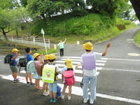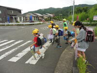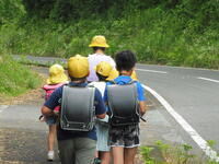 毎朝、見守り隊や保護者のみなさんに見守られて、子どもたちは安心・安全に登校できています。集合場所では、子どもたちは見守り隊や保護者のみなさんに元気よくあいさつをしています。ある地区の登校の様子です。上学年が見守りながらしっかり登校できています。「自分も大切、あなたも大切と認め合える石山小学校」です。